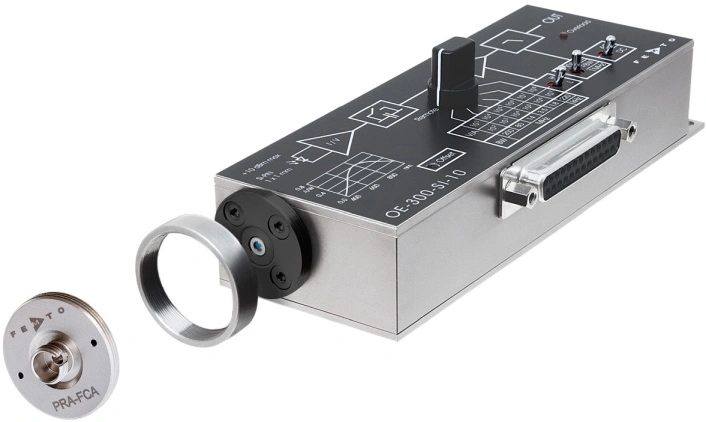 Der Freistrahl-Gewindeanschluss kann durch Anschrauben der optional erhältlichen Faseradapter der Serie PRA in Sekundenschnelle zu einem Faseranschluss (FC, FSMA) umgebaut werden.